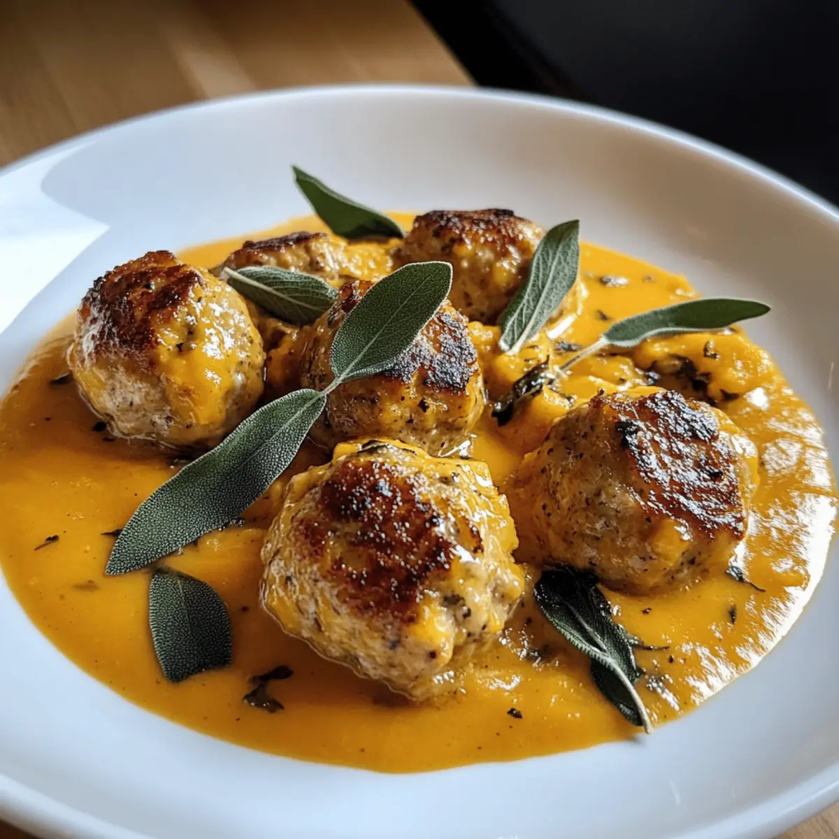 Es war ein kühler Herbstabend, als ich das Verlangen nach etwas Herzhaftem verspürte – das ist der Ausgang für meine Leidenschaft für die Küche. Diese Gebetenheit wurde durch die Vorstellung von zarten Truthahnfrikadellen in einer cremigen Kürbis-Salbei-Sauce noch verstärkt. Diese Rezeptur vereint die wärmenden Aromen des Herbstes und ist perfekt für gesellige Abende oder schnelle Wochentagsessen. Mit einer Vorbereitungszeit von nur 15 Minuten und insgesamt 30 Minuten Kochzeit ist dieses Gericht nicht nur einfach zuzubereiten, sondern auch ein echter Genuss für die ganze Familie. Die Kombination aus herzhaften Fleischbällchen und der samtigen Kürbissauce macht es zu einem wunderbar einladenden Komfortgericht. Bist du bereit, in die köstlichen Aromen des Herbstes einzutauchen? Lass uns loslegen! Warum wirst du dieses Rezept lieben? Wärmende Aromen: Die Kombination aus zarten Truthahnfrikadellen und cremiger Kürbis-Salbei-Sauce bringt die perfekten Herbstnoten auf deinen Tisch. Einfache Zubereitung: Mit nur 15 Minuten Vorbereitungszeit ist dieses Gericht ideal für eine stressfreie Wochentagsmahlzeit. Vielseitig und anpassbar: Füge Gesundheit hinzu, indem du Spinat oder Kale in die Sauce integrierst. Crowd-Pleaser: Ob bei Feiern oder Familienessen, jeder wird diese köstliche Kombination lieben. Du suchst nach weiteren leckeren Rezepten? Probiere auch unsere Zucchini Sahnesauce Einfaches oder das Parmesan Huehnchen Knoblauchsauce. Zutaten für Türkische Fleischbällchen • Für die Fleischbällchen Ground Turkey – Die Basisproteinquelle für die Frikadellen, die einen mageren Geschmack bietet. Breadcrumbs – Dienen als Bindemittel und sorgen für Feuchtigkeit und Struktur. Parmesan Cheese – Fügt nussige, salzige Reichhaltigkeit hinzu und verbessert die Bräunung. Egg – Bindet die Zutaten und hilft, die Form der Frikadellen zu halten. Minced Garlic – Bringt ein helles, aromatisches Aroma in die Mischung. Salt – Verstärkt den Gesamtgeschmack und harmonisiert das Gericht. Black Pepper – Fügt eine subtile Wärme und Tiefe hinzu. Olive Oil – Geht zum Anbraten der Frikadellen über und sorgt für eine goldene Kruste. • Für die Sauce Pumpkin Puree – Herzstück der Sauce, das Cremigkeit und herbstliche Farbe schenkt. Chicken Broth – Verdünnt die Sauce und gibt einen herzhaften Geschmack. Heavy Cream – Sorgt für eine samtige und reichhaltige Sauce. Ground Sage – Verleiht der Sauce erdige Wärme und herbstliche Aromen. Nutmeg – Fügt eine süß-würzige Note hinzu, die die Aromen verstärkt. Fresh Sage Leaves – Dienen als Garnierung und bringen zusätzliches Aroma. Jede Zutat trägt zur Harmonie der Aromen bei und macht die Türkischen Fleischbällchen in Kürbis-Salbei-Sauce zu einem unvergesslichen Erlebnis! Schritt-für-Schritt-Anleitung für Türkische Fleischbällchen in Kürbis-Salbei-Sauce Schritt 1: Fleischbällchen vorbereiten In einer großen Schüssel das Hackfleisch vom Truthahn, die Semmelbrösel, den Parmesan, das Ei, den gehackten Knoblauch, Salz und Pfeffer gut vermengen. Verwende eine Gabel oder deine Hände, um sicherzustellen, dass alle Zutaten gleichmäßig verteilt sind. Dies dauert etwa 5 Minuten. Achte darauf, die Mischung nicht zu stark zu kneten, um zarte Fleischbällchen zu erhalten. Schritt 2: Fleischbällchen formen Die Mischung mit den Händen in gleichmäßig große Kugeln von etwa 2,5 cm Durchmesser formen. Diese einheitliche Größe sorgt dafür, dass die Fleischbällchen gleichmäßig garen. Lege die geformten Fleischbällchen auf einen Teller und stelle sicher, dass sie sich nicht berühren. Dieser Schritt sollte ebenfalls etwa 5 Minuten in Anspruch nehmen. Schritt 3: Fleischbällchen braten Erhitze in einer großen Pfanne bei mittlerer Hitze 2 Esslöffel Olivenöl. Sobald das Öl heiß ist, die Fleischbällchen vorsichtig hineinlegen und für 8-10 Minuten braten, bis sie goldbraun sind und eine Kerntemperatur von 75°C erreicht haben. Wende die Bällchen während des Bratens gelegentlich, damit sie gleichmäßig bräunen. Nach dem Braten die Fleischbällchen auf einen Teller legen und beiseite stellen. Schritt 4: Sauce zubereiten In derselben Pfanne das Kürbispüree mit der Hühnerbrühe hinzufügen und bei mittlerer Hitze verrühren. Dabei die angebratenen Reste vom Boden der Pfanne mit einem Kochlöffel lösen, um zusätzlichen Geschmack in die Sauce zu bringen. Diese Sauce sollte etwa 3-5 Minuten köcheln, bis sie gut erwärmt ist. Schritt 5: Sahne und Gewürze hinzufügen Sobald die Sauce gut vermischt ist, die schwere Sahne, den gemahlenen Salbei und den Muskatnuss einrühren. Alles gut umrühren, damit eine cremige Konsistenz entsteht. Die Sauce 3-5 Minuten köcheln lassen, bis sie leicht eingedickt ist und die Aromen sich gut verbunden haben. Nach Belieben abschmecken. Schritt 6: Fleischbällchen in die Sauce geben Die vorgebratenen Fleischbällchen zurück in die Pfanne mit der Sauce geben. Die Fleischbällchen für 5 Minuten bei niedriger Hitze köcheln lassen, damit sie die köstlichen Aromen der Kürbis-Salbei-Sauce aufnehmen. Achte darauf, die Bällchen vorsichtig zu wenden, damit sie gleichmäßig bedeckt sind. Schritt 7: Garnieren und servieren Nachdem die Fleischbällchen in der Sauce durchgezogen sind, die Pfanne vom Herd nehmen. Mit frischen Salbeiblättern garnieren, um Farbe und Aroma hinzuzufügen. Die türkischen Fleischbällchen in Kürbis-Salbei-Sauce warm servieren und genießen! Variationen & Alternativen Entdecke, wie du dieses Rezept ganz nach deinem Geschmack anpassen kannst! Vegetarische Variante: Ersetze das Truthahnfleisch durch Linsen oder Kichererbsen für eine pflanzliche Version voller Proteine. Diese Kombination bringt ebenso eine erstaunliche Textur und Geschmack. Glutenfrei: Verwende glutenfreie Semmelbrösel oder Mandelmehl, um den Teig zu binden. So kannst du dieses Gericht auch genießen, wenn du auf Gluten verzichten möchtest. Zusätzliche Gemüseeinlage: Füge Spinat