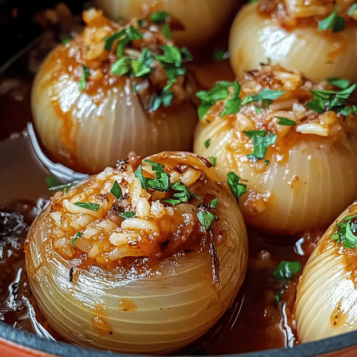 Das erste Mal, als ich die warmen Düfte von türkischen gefüllten Zwiebeln – Soğan Dolması – in meiner Küche wahrnahm, fühlte ich mich, als wäre ich auf einer kulinarischen Reise durch die Straßen Istanbuls. Diese traditionelle Spezialität vereint die zarten Schichten von Zwiebeln mit einer duftenden Füllung aus Reis, frischen Kräutern und Gewürzen, alles in einer köstlichen Tomatensauce gebacken. Diese gefüllten Zwiebeln sind nicht nur eine wärmende Umarmung für die Seele, sondern auch eine großartige Möglichkeit, ein herzhaftes und sättigendes Gericht zu zaubern, das deine Familie und Freunde begeistern wird. Egal, ob du das Rezept vegetarisch zubereitest oder eine optionale Fleischvariante hinzufügst, es handelt sich um ein Gericht, das in jeder Form Freude bringt. Bist du bereit, den Zauber der türkischen Küche in dein Zuhause zu bringen? Warum wirst du dieses Rezept lieben? Einfachheit: Die Zubereitung dieser gefüllten Zwiebeln erfordert keine komplizierten Techniken und ist für jeden Zuhausekoch geeignet. Reichhaltiger Geschmack: Die Kombination aus frischen Kräutern und Gewürzen verleiht jedem Biss einen intensiven, aromatischen Genuss. Vielseitigkeit: Dieses Rezept lässt sich leicht anpassen – ob mit Fleisch oder vegetarisch, die Optionen sind unendlich. Probiere auch die glutenfreie Variante mit Quinoa! Zeit sparen: Du kannst die gefüllten Zwiebeln im Voraus zubereiten und im Kühlschrank aufbewahren, was ideale Voraussetzungen für stressfreies Kochen schafft. Beliebtheit: Dieses Gericht bringt garantiert Freude auf den Tisch und eignet sich perfekt für Familientreffen und gesellige Runden. Zutaten für Türkische gefüllte Zwiebeln • Für ein perfektes Ergebnis ist die Auswahl der richtigen Zutaten entscheidend. Für die Zwiebeln Große gelbe oder weiße Zwiebeln – Die Basis des Gerichts, die beim Kochen Süße und Weichheit verleiht. Tipp: Verwende die größten Zwiebeln für einfaches Füllen. Für die Füllung Reis – Bietet Struktur und absorbiert Aromen für eine herzhafte Konsistenz. Ersetze ihn durch Quinoa für eine glutenfreie Option. Frische Kräuter (z.B. Petersilie, Dill) – Fügt lebendige Frische und Geschmack hinzu. Geduldete Kräuter können im Notfall verwendet werden, frische sind jedoch vorzuziehen. Tomatensauce – Umtopft die Zwiebeln und sorgt für Feuchtigkeit und ein reichhaltiges Geschmacksprofil. Könnte durch dosierte, gewürfelte Tomaten ersetzt werden, falls nötig. Salz und Pfeffer – Gewürze zur Verstärkung aller Aromen in der Füllung. Passe die Menge nach deinem persönlichen Geschmack an. Gewürze (z.B. Paprika, Kreuzkümmel) – Fügt Wärme und Komplexität zur Füllung hinzu. Röste die Gewürze vor dem Hinzufügen für intensiveren Geschmack. Zitronensaft – Hellert das Gericht auf und verleiht eine spritzige Note. Verwende frischen Zitronensaft, wenn möglich! Optional Kichererbsen – Eine großartige Ergänzung für eine proteinreiche, vegetarische Füllung. Zusätzliche Gewürze (z.B. Zimt oder Piment) – Für ein einzigartiges Geschmacksprofil kannst du gerne experimentieren! Schritt-für-Schritt-Anweisungen für Türkische gefüllte Zwiebeln Step 1: Zwiebeln vorbereiten Die äußeren Schichten der großen gelben oder weißen Zwiebeln vorsichtig abziehen. In einem Dampfgarer die Zwiebeln für etwa 10-15 Minuten dämpfen, bis sie weich sind und sich leicht trennen lassen. Achte darauf, dass sie nicht zu viel verkochen, da die Schichten intakt bleiben müssen, um sie später zu füllen. Step 2: Füllung zubereiten In einer Schüssel den ungekochten Reis, fein gehackte frische Kräuter wie Petersilie und Dill sowie Gewürze wie Paprika und Kreuzkümmel vermengen. Nach Belieben etwas salzen und pfeffern. Für zusätzliche Herzhaftigkeit kannst du optional auch etwas gewiegtes Fleisch hinzufügen. Alles gut vermischen, bis die Zutaten gleichmäßig verteilt sind. Step 3: Zwiebeln füllen und rollen Nimm vorsichtig die einzelnen Schichten der Zwiebeln heraus und fülle sie mit der vorbereiteten Reisfüllung. Achte darauf, die Zwiebeln nicht zu überfüllen, damit sie sich leicht rollen lassen. Rolle jede gefüllte Zwiebel dicht und platziere sie dann nebeneinander in einer Auflaufform. Step 4: Gefüllte Zwiebeln backen Die gefüllten Zwiebeln mit Tomatensauce übergießen und die Auflaufform mit Alufolie abdecken. Bei 180 Grad Celsius etwa 40-45 Minuten backen, bis die Zwiebeln und der Reis zart sind. Nach der Backzeit die Folie abnehmen und einige Minuten weiter backen, um eine schöne Farbe zu erzielen. Step 5: Servieren und genießen Die türkischen gefüllten Zwiebeln heiß servieren, idealerweise zusammen mit einem frischen Salat, pitaartigem Brot oder einem Klecks Joghurt. Diese Kombination sorgt für ein rundum schmackhaftes und befriedigendes Essen, das deine Familie und Freunde begeistern wird. Meal Prep für Türkische gefüllte Zwiebeln Diese türkischen gefüllten Zwiebeln sind perfekt für Meal Prep! Du kannst die Zwiebeln bis zu 24 Stunden im Voraus dämpfen und die Füllung zubereiten. Lagere die gefüllten Zwiebeln einfach in einer luftdichten Schüssel im Kühlschrank, um ihre Frische zu bewahren. Achte darauf, die Tomatensauce erst kurz vor dem Backen hinzuzufügen, damit die Zwiebeln nicht zu viel Feuchtigkeit ziehen und matschig werden. Wenn es Zeit ist, sie zu backen, gieße die Sauce über die Zwiebeln, decke sie mit Alufolie ab und backe sie bei 180 Grad Celsius für 40–45 Minuten. Mit dieser Vorbereitung sparst du Zeit und kannst schnell ein köstliches, herzhaftes Gericht auf den Tisch zaubern! Aufbewahrung und Einfrieren der Türkischen gefüllten Zwiebeln Kühlschrank: Bewahre die gefüllten Zwiebeln in einem luftdichten Behälter auf und genieße sie innerhalb von 3 Tagen. So bleibt der Geschmack frisch und köstlich. Einfrieren: Du kannst die ungebackenen gefüllten Zwiebeln bis zu 3 Monate einfrieren. Bedecke sie fest mit Frischhaltefolie und dann mit Aluminiumfol