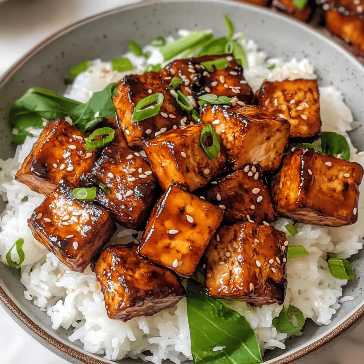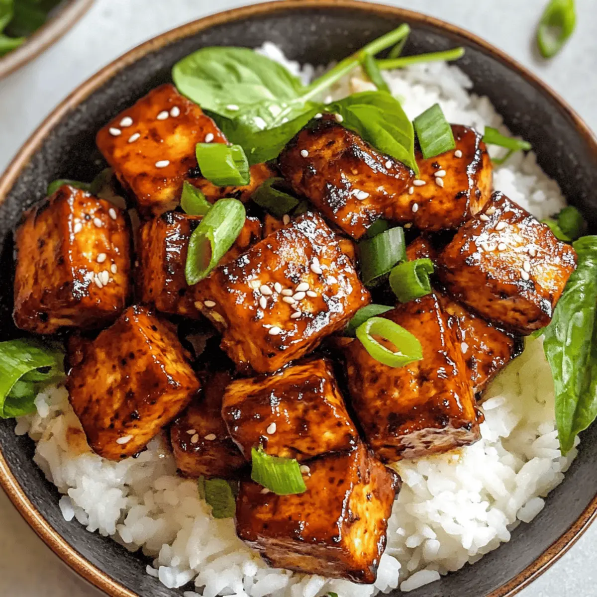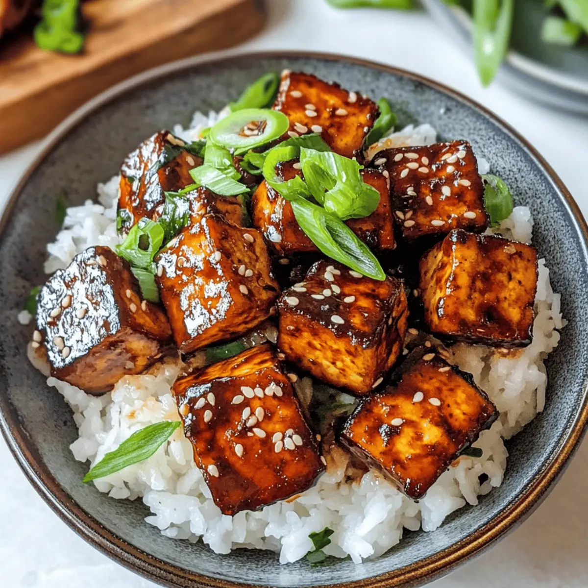 Die brutzelt sanft in der Pfanne, während ich den unwiderstehlichen Duft von würzigem Tofu einatme. Unsere 20-minütige Umami Bomb Tofu-Rezept ist nicht nur schnell und einfach zuzubereiten, sondern auch ein wahres Geschmackserlebnis für alle, die sich nach einer gesunden, veganen Alternative sehnen. Die perfekte Kombination von glutenfreiem Tamari, süßem Ahornsirup und würziger Dijon-Senfsoße verwandelt dieses Gericht in ein außergewöhnliches Highlight für eure nächste Mahlzeit. Ob in Buddha-Bowls, Salaten oder Wraps – die vielseitigen Möglichkeiten machen es leicht, etwas Einzigartiges auf den Tisch zu bringen. Bereitet euch vor auf ein Gericht, das nicht nur den Gaumen, sondern auch das Herz erwärmt. Welche Variante dieses umami-ladenen Genuss werdet ihr als Nächstes ausprobieren? Warum ist dieses Rezept so besonders? Einfachheit: Mit nur wenigen Zutaten und minimalem Aufwand zaubert ihr ein köstliches Gericht in nur 20 Minuten. Vielseitigkeit: Diese Tofu-Delikatesse lässt sich wunderbar in verschiedensten Gerichten wie Buddha-Bowls oder Wraps integrieren. Würzige Aromen: Die Kombination aus Tamari, Ahornsirup und Dijon-Senf sorgt für ein umami-erlebnis, das sowohl Vegetarier als auch Fleischliebhaber begeistert. Gesundheitsbewusst: Dieses Gericht ist nicht nur vegan, sondern auch glutenfrei, was es zu einer idealen Wahl für alle ernährungsbewussten Esser macht. Stimmungsaufheller: Mit seinem unwiderstehlichen Duft und dem knackigen Biss bringt dieser gebratene Tofu Freude auf den Tisch. Für weitere geschmackvolle Inspirationen schaut euch auch unsere anderen veganen Rezepte an! Umami Bomb Tofu Zutaten • Umami Bomb Tofu vereint köstliche Aromen und gesunde Zutaten. Für das Braten Avocadoöl – sorgt für neutrales Braten. Olivenöl ist eine gute Alternative. Extra fester Tofu – liefert eine perfekte Textur und Protein. Verwende einen Block von 14 oz, der gut abgetropft, aber nicht gepresst ist. Für die Sauce Tamari – bietet eine glutenfreie Variante mit intensivem Umami-Geschmack. Normale Sojasauce kann verwendet werden, wenn kein Glutenproblem besteht. Dijon-Senf – sorgt für die richtige Balance aus Würze und Cremigkeit. Gelber Senf ist im Notfall ebenfalls geeignet. Wasser – verdünnt die Sauce. Gemüsebrühe kann für mehr Geschmack verwendet werden. Ahornsirup – bringt die nötige Süße ins Spiel. Agavendicksaft ist ein guter Ersatz. Für die Servierung (optional) Sesamkörner – verleihen zusätzlichen Crunch. Füge sie vor dem Servieren hinzu. Frische Frühlingszwiebeln – sorgen für einen frischen Geschmack. Perfekt als Garnierung. Gemüse – wie Paprika oder Brokkoli für mehr Farbe und Nährstoffe. Schritt-für-Schritt-Anleitung für Umami Bomb Tofu Step 1: Avocadoöl erhitzen Erhitze in einer großen Pfanne bei mittlerer bis hoher Wärme 2 Esslöffel Avocadoöl. Achte darauf, dass das Öl gut erhitzt ist, bevor du mit dem Braten beginnst – es sollte leicht glänzen und zu verflüssigen beginnen, was dir signalisiert, dass es bereit ist für den nächsten Schritt. Step 2: Tofu braten Füge 400 g gewürfelten, extra festen Tofu in die heiße Pfanne hinzu. Brate die Tofuwürfel ca. 8-10 Minuten lang, bis sie goldbraun und knusprig sind. Wende die Würfel regelmäßig, damit sie gleichmäßig bräunen. Die Oberfläche sollte eine appetitliche goldene Farbe annehmen, was auf eine perfekte Textur hinweist. Step 3: Sauce zubereiten Während der Tofu brät, nimm eine separate Schüssel und verrühre 3 Esslöffel Tamari, 1 Esslöffel Dijon-Senf, 3 Esslöffel Wasser und 2 Esslöffel Ahornsirup sorgfältig miteinander. Achte darauf, dass alle Zutaten gut kombiniert sind, und das Ergebnis eine glatte, uniforme Sauce bildet, die später über den Tofu gegossen wird. Step 4: Sauce hinzufügen Gieße die vorbereitete Sauce über den gebratenen Tofu in der Pfanne. Rühre alles gut um, sodass die Würfel gleichmäßig mit der Sauce überzogen sind. Lasse die Mischung für weitere 5 Minuten bei mittlerer Hitze köcheln, damit der Tofu die Aromen aufnehmen kann und die Sauce leicht eindickt. Step 5: Servieren Nehme den Umami Bomb Tofu vom Herd und serviere ihn heiß. Dieses köstliche Gericht eignet sich hervorragend über einem Bett aus Reis oder in einem frischen Salat. Dekoriere nach Belieben mit Sesamkörnern oder Frühlingszwiebeln, um zusätzlichen Geschmack und Farbe zu verleihen. Tipps für die beste Umami Bomb Tofu Tofu gut abtropfen: Achte darauf, dass der Tofu gründlich abgetropft ist, um eine perfekte, knusprige Textur zu erreichen. Richtige Hitze: Koche den Tofu bei mittlerer bis hoher Hitze, damit er außen schön knusprig wird, ohne innen trocken zu sein. Sauce anpassen: Mache eine Probe von der Sauce und passe die Süße oder den salzigen Geschmack nach deinem persönlichen Geschmack an. Vegetarische Beilagen: Ergänze dein Gericht mit frischem Gemüse wie Paprika oder Brokkoli, um noch mehr Nährstoffe und Farbe zu bieten. Resteverwertung: Bewahre Reste in einem luftdichten Behälter im Kühlschrank auf und wärme sie auf dem Herd wieder auf, um die Textur zu bewahren. Lagerungstipps für Umami Bomb Tofu Raumtemperatur: Umami Bomb Tofu sollte nicht bei Raumtemperatur aufbewahrt werden, da dies das Risiko von Bakterienwachstum erhöht. Kühlschrank: Lagere Reste in einem luftdichten Behälter im Kühlschrank bis zu 3 Tage. Dies hält den Tofu frisch und verhindert das Austrocknen. Gefrierschrank: Um den Tofu bis zu 3 Monate einzufrieren, lege ihn in einen gefriergeeigneten Behälter. Achte darauf, überschüssige Luft zu entfernen, um Gefrierbrand zu vermeiden. Wiedererwärmen: Zum Aufwärmen den Tofu auf dem Herd bei mittlerer Hitze erneut braten, bis er heiß und wieder knusprig ist. Was passt gut zu Umami Bomb Tofu? Die köstlichen Aromen der Umami Bomb Tofu verlangen nach begleitenden Gerichten, die die Geschmackserfahrung vollständig machen. Dampfreis: Weicher, dampfender Reis bietet eine perfekte Basis, um die intensiven A