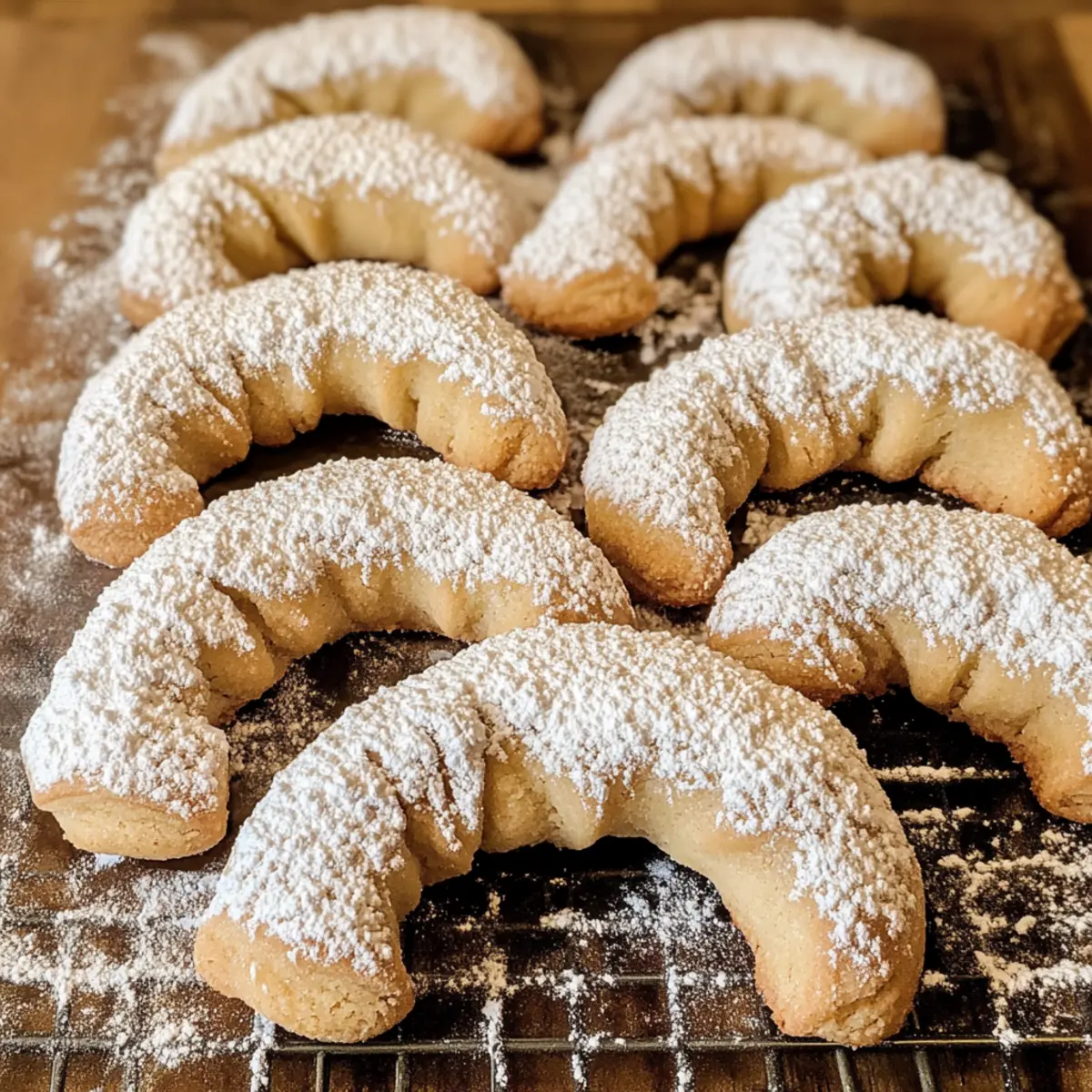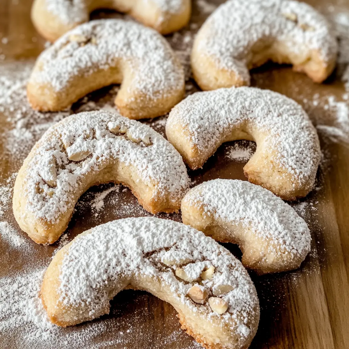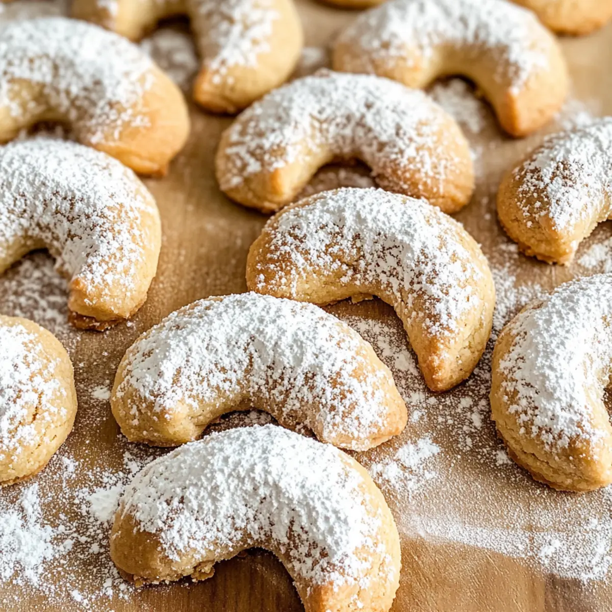 Wenn ich den Duft von frisch gebackenen Walnuss-Crescent-Cookies wahrnehme, fühle ich sofort die Magie der Feiertage: Buttrig, nussig und süß – diese kleinen Köstlichkeiten sind ein wahres Fest für die Sinne. Mit nur wenigen einfachen Zutaten gelingen sie im Handumdrehen, perfekt für kreative Cookie-Tauschaktionen oder als liebevolles Geschenk aus der heimischen Backstube. Die zarte, mürbe Textur dieser Kekse schmilzt geradezu auf der Zunge und setzt ein Zeichen für Gemütlichkeit und festliche Freude. Und das Beste daran? Sie sind nicht nur ein Hit auf jeder Weihnachtsfeier, sondern lassen sich auch wunderbar im Voraus zubereiten und einfrieren. Wer könnte da widerstehen? Seid ihr bereit, mit mir in die Welt der Walnuss-Crescent-Cookies einzutauchen? Warum sind Walnuss-Crescent-Cookies ein Muss? Unwiderstehlicher Geschmack: Die Kombination aus buttrigem Teig und knackigen Walnüssen sorgt für eine herrlich nussige Note, die einfach glücklich macht. Einfach zu machen: Mit nur wenigen Zutaten und klaren Schritten gelingen diese Kekse auch Backanfängern im Handumdrehen. Festliche Atmosphäre: Diese kleinen Köstlichkeiten passen perfekt zu jeder Feier und bringen die festliche Stimmung direkt zu dir nach Hause. Vielseitig: Ob als Geschenk für Freunde oder für die eigene Cookie-Party, sie sind immer ein Genuss. Hervorragende Haltbarkeit: Diese Kekse lassen sich hervorragend im Voraus zubereiten und eingefrieren, sodass du jederzeit ein Backwunder zur Hand hast. Lass dich auch von unseren Himbeer Kaesekuchen Riegel inspirieren, die ebenso einfach und köstlich sind! Walnuss-Crescent-Cookies Zutaten • Diese köstlichen Walnuss-Crescent-Cookies sind mit wenigen, einfachen Zutaten schnell zubereitet! Für den Teig Ungesalzene Butter – sorgt für Reichtum und Feuchtigkeit, ist unverzichtbar für die Textur der Kekse. Zucker – sorgt für Süße und hilft, die zarte Struktur der Kekse zu schaffen. Allzweckmehl – der Hauptbestandteil, der die Struktur der Kekse aufbaut. Gehackte Walnüsse – bringen Nussigkeit und Textur; können durch Pekannüsse ersetzt werden, falls gewünscht. Vanilleextrakt – verleiht Tiefe und verstärkt die Süße; für den besten Geschmack sollte es rein sein. Salz – balanciert die Süße und hebt den Gesamtgeschmack hervor; unbedingt hinzufügen. Zimt-Zeste (optional) – fügt Wärme und eine dezente Gewürznote hinzu; kann durch Muskatnuss ersetzt werden. Weitere Zubereitungsschritte Puderzucker – zum Bestäuben der abgekühlten Kekse; verleiht einen süßen Abschluss und sieht hübsch aus. Step-by-Step Instructions für Walnuss-Crescent-Cookies Step 1: Butter und Zucker cremig schlagen Beginnen Sie damit, die ungesalzene Butter in einer großen Schüssel mit einem Handmixer bei mittlerer Geschwindigkeit etwa 3-4 Minuten lang schaumig zu schlagen, bis sie hell und luftig ist. Fügen Sie den Zucker hinzu und mischen Sie kontinuierlich weiter, bis die Mischung gut vermischt ist. Geben Sie den Vanilleextrakt hinzu und rühren Sie für weitere 30 Sekunden, um die Aromen zu vereinen. Step 2: Trockene Zutaten vermengen In einer separaten Schüssel kombinieren Sie das Allzweckmehl, das Salz, die gehackten Walnüsse und, falls gewünscht, die Zimt-Zeste. Mischen Sie alles gründlich mit einem Schneebesen, damit sich die Zutaten gleichmäßig verteilen. Diese trockenen Zutaten bilden die Basis für den teigigen Teil der Walnuss-Crescent-Cookies. Step 3: Mischungen kombinieren Langsam fügen Sie die trockenen Zutaten hinzu, während Sie die Buttermischung bei niedriger Geschwindigkeit weiter schlagen. Rühren Sie nur so lange, bis alles gerade so verbunden ist; achten Sie darauf, nicht zu übermixen, um eine zarte Textur der Kekse zu bewahren. Der Teig sollte leicht klebrig, aber gut zusammenhaltend sein. Step 4: Teig kühlen Teilen Sie den Teig in vier gleichmäßige Portionen und wickeln Sie jede Portion in Frischhaltefolie. Lassen Sie den Teig 30-60 Minuten im Kühlschrank ruhen, damit er fester wird und besser formbar ist. Dieser Schritt ist entscheidend, um die Form der Walnuss-Crescent-Cookies während des Backens zu erhalten. Step 5: Kekse formen Heizen Sie den Ofen auf 175 °C vor und legen Sie Backbleche mit Backpapier aus. Nehmen Sie eine Portion des gekühlten Teigs und rollen Sie sie auf einer leicht bemehlten Fläche zu einem 30 cm langen Strang. Schneiden Sie den Strang in 2,5 cm lange Stücke und formen Sie jedes Stück zu einem Halbmond. Platzieren Sie die geformten Kekse auf den vorbereiteten Backblechen. Step 6: Backen Backen Sie die Walnuss-Crescent-Cookies im vorgeheizten Ofen etwa 12-15 Minuten lang, bis die Ränder leicht golden sind. Lassen Sie die Kekse in der Mitte des Backvorgangs nicht zu lange, da sie eine zarte Textur haben sollten. Achten Sie darauf, die Keksform während des Backens nicht zu verlieren. Step 7: Abkühlen und bestäuben Nehmen Sie die Kekse aus dem Ofen und lassen Sie sie 5 Minuten auf den Backblechen abkühlen, bevor Sie sie auf ein Kuchengitter legen. Lassen Sie die Walnuss-Crescent-Cookies vollständig auskühlen, bevor Sie sie großzügig mit Puderzucker bestäuben. Diese süße Bestäubung sorgt nicht nur für einen schöneren Look, sondern verstärkt auch das Geschmackserlebnis. Walnuss-Crescent-Cookies Variationen Lass dich von diesen köstlichen Ideen inspirieren, um deinen Walnuss-Crescent-Cookies eine persönliche Note zu verleihen! Dunkle Schokolade: Füge Schokoladenstückchen hinzu, um eine süßere Note zu erzielen. Der Kontrast zwischen der Schokolade und den Nüssen bringt eine herrliche Geschmackstiefe. Pekannüsse: Ersetze die Walnüsse durch gehackte Pekannüsse für einen neuen, leicht süßeren und cremigeren Geschmack. Perfekt, wenn du Abwechslung suchst! Mandeln: Statt Walnüsse kannst du auch gehackte Mandeln verwenden. Der nussige Geschmack wird sich wunderbar mit dem Teig verbinden. Zimt-Honig Drizzle: Verleihe deinen Cookies nach dem Backen einen warmen Zimt-Honig Glasur. Einfac