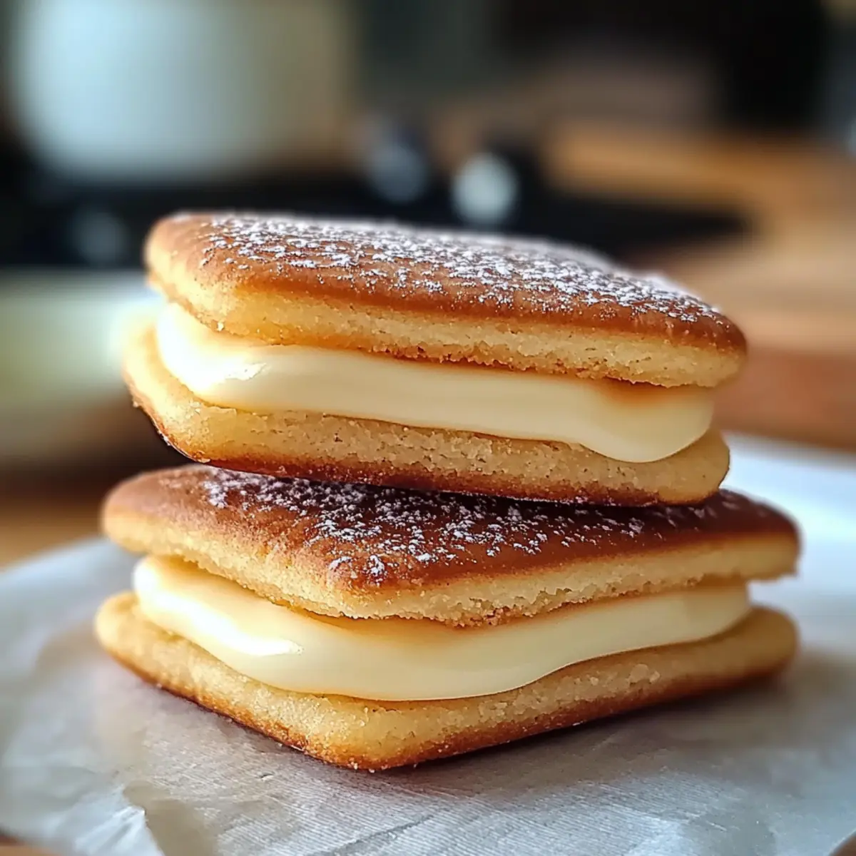 Wenn ich an unvergessliche Momente in der Küche denke, kommen mir oft die zauberhaften Aromen aus Japan in den Sinn. Ein ganz besonderer Schatz dieser Küche sind die Shiroi Koibito, die auch als „Weiße Geliebte“ bekannt sind. Diese delikaten Sandwich-Cookies bestehen aus knusprigen Keksschichten, die mit cremiger weißer Schokolade gefüllt sind – eine wahre Symphonie der Texturen und Geschmäcker! Sie sind nicht nur ein echter Publikumsliebling, sondern auch leicht zuzubereiten, sodass Sie im Handumdrehen eine süße Köstlichkeit zaubern können. Zudem bieten sie die Möglichkeit, glutenfreie Varianten zu kreieren oder ganz nach Ihrem Geschmack mit unterschiedlichen Schokoladensorten zu experimentieren. Bereit, mit mir zusammen in die Welt der japanischen Süßigkeiten einzutauchen? Lassen Sie uns diese himmlischen Leckereien gemeinsam backen! Warum werden Sie diese Weißen Geliebten lieben? Einfachheit: Die Zubereitung ist unkompliziert und erfordert nur grundlegende Backfähigkeiten. Diese knusprigen Sandwich-Cookies lassen sich im Handumdrehen kreieren. Vielfalt: Mit zahlreichen Variationsmöglichkeiten können Sie Ihre eigenen Favoriten schaffen, indem Sie verschiedene Schokoladensorten oder glutenfreie Zutaten verwenden. Aromatische Fülle: Die Kombination von cremiger weißer Schokolade und knusprigen Keksen sorgt für ein unvergessliches Geschmackserlebnis. Perfekte Mischung: Die Textur der Cookies – von außen knusprig und innen zart – macht jeden Bissen zu einem Genuss. Naschen und Teilen: Ob für eine Feier oder einfach für sich selbst – diese Cookies sind die ideale süße Leckerei und ein echter Publikumsmagnet, der jeden beeindruckt. Lassen Sie sich auch von unseren Variationen für glutenfreie Option inspirieren! Zutaten für Weiße Geliebte • Diese leckeren Sandwich-Cookies verlangen nach simplen, aber hochwertigen Zutaten, um ihr volles Aroma zu entfalten. Für den Teig Ungesalzene Butter – sorgt für Reichtum und Feuchtigkeit, kann durch Margarine für eine milchfreie Version ersetzt werden. Kristallzucker – fügt Süße hinzu und hilft, die knusprigen Ränder zu bilden; brauner Zucker verleiht einen leicht anderen Geschmack. Weißes Mehl – bildet die Struktur der Kekse; verwenden Sie eine glutenfreie Mehlmischung für glutenfreie Cookies. Backpulver – sorgt für eine luftige Textur; achten Sie auf die Frische für optimale Ergebnisse. Salz – balanciert die Süße und hebt den Geschmack hervor; grobes Meersalz kann für eine andere Textur verwendet werden. Vanilleextrakt – fügt aromatische Wärme hinzu und verbessert den Gesamtgeschmack; reiner Vanilleextrakt ist für einen natürlicheren Geschmack vorzuziehen. Für die Füllung Weiße Schokoladenstückchen – das Herzstück der Füllung, sorgt für cremige Süße; können durch Milch- oder Zartbitterschokolade für alternative Geschmäcker ersetzt werden. Optional Kakaopulver – kann zum Bestäuben verwendet werden, um einen visuell ansprechenden Kontrast hinzuzufügen. Diese weißen Geliebten sind nicht nur ein Fest für die Sinne, sondern auch anpassbar für alle, die glutenfreie Optionen suchen! Schritt-für-Schritt-Anleitung für Weiße Geliebte Step 1: Teig vorbereiten Schlagen Sie die weiche, ungesalzene Butter zusammen mit dem Kristallzucker in einer großen Schüssel, bis die Mischung leicht und cremig ist. Fügen Sie dann den Vanilleextrakt und das Salz hinzu und rühren Sie alles gut durch. Dies sollte etwa 5 Minuten dauern und eine fluffige Konsistenz ergeben, die goldgelb erscheint. Step 2: Trockene Zutaten kombinieren In einer separaten Schüssel sieben Sie das weiße Mehl und das Backpulver zusammen. Mischen Sie diese trockenen Zutaten vorsichtig mit der cremigen Butter-Zucker-Mischung, bis sich alles gut verbunden hat. Der Teig sollte fest und geschmeidig sein, ohne Klumpen, und das Gesamtbild sollte eine homogene, glatte Masse ergeben. Step 3: Schokolade unterheben Falten Sie die weißen Schokoladenstückchen langsam in den Teig ein, bis sie gleichmäßig verteilt sind. Diese Schritt sorgt dafür, dass jeder Biss der Weißen Geliebten mit der köstlichen, cremigen Füllung versehen ist. Achten Sie darauf, nicht zu rühren, da dies die zarte Textur des Teigs beeinträchtigen könnte. Step 4: Kekse formen Verwenden Sie einen Esslöffel, um gleichmäßige Portionen des Teigs abzuheben und formen Sie diese zu flachen Runden. Legen Sie die geformten Teigstücke auf ein mit Backpapier ausgelegtes Blech. Lassen Sie genügend Platz zwischen den Keksen, da sie beim Backen etwas auseinanderlaufen werden. Step 5: Backen Heizen Sie den Ofen auf 175 °C vor. Backen Sie die Weißen Geliebten für etwa 20-25 Minuten, bis die Ränder leicht goldbraun sind. Achten Sie darauf, die Kekse nicht zu lange zu backen, da sie weiterhin etwas nachgaren, wenn Sie sie aus dem Ofen nehmen. Step 6: Abkühlen und Füllen Lassen Sie die frisch gebackenen Kekse auf dem Blech für etwa 10 Minuten abkühlen, bevor Sie sie auf ein Gitterrost legen, um sie vollständig abkühlen zu lassen. Sobald sie abgekühlt sind, nehmen Sie eine Keks-Schicht und geben eine großzügige Portion geschmolzene weiße Schokolade darauf, bevor Sie einen weiteren Keks daraufsetzen, um eine köstliche Sandwichfüllung zu kreieren. Vorbereitungen für die Weißen Geliebten: So sparen Sie Zeit Diese Weißen Geliebten sind perfekt für Meal Prep, insbesondere wenn Sie geschäftig sind! Sie können den Keksteig bis zu 48 Stunden im Voraus zubereiten und im Kühlschrank aufbewahren, damit die Aromen sich entfalten. Formen Sie die Kekse, legen Sie sie auf ein Backblech und frieren Sie sie für bis zu 3 Monate ein; so haben Sie jederzeit eine köstliche Süßigkeit zur Hand, die nach nur 20-25 Minuten Backzeit frisch gebacken werden kann! Um die Qualität zu erhalten, sollten Sie die Kekse in einem luftdichten Behälter aufbewahren, sodass sie bis zu einer Woche knusprig bleiben. Beim Servieren einfach die Kekse mit geschmolzener wei