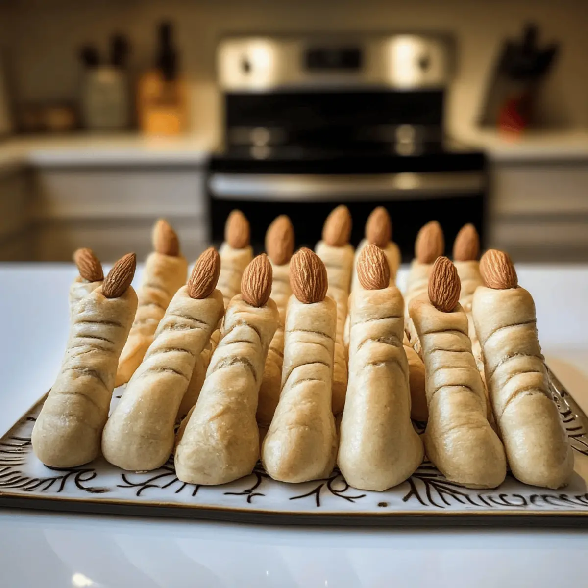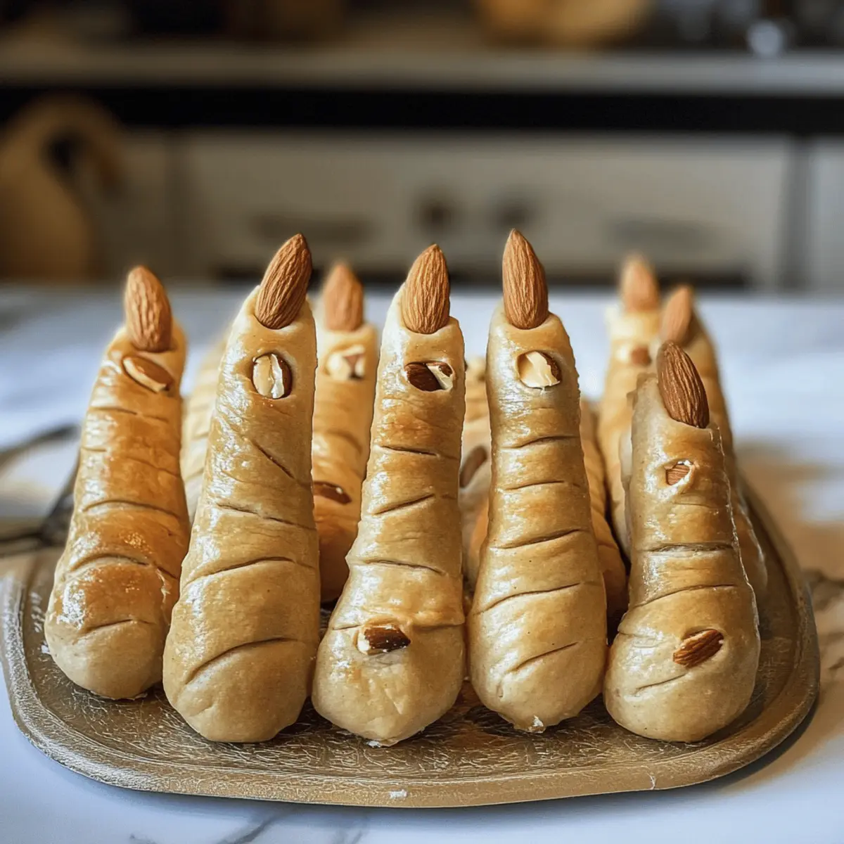 Ein sanfter Hauch von gruseligem Spaß weht durch die Küche, während ich mich darauf vorbereite, eine außergewöhnliche Lieblingsleckerei für Halloween zuzubereiten: die zauberhaften Witch Finger Breadsticks. Diese unheimlich geformten Snacksticks sind mehr als nur ein Hingucker; sie bieten eine perfekte Kombination aus einem knusprigen Äußeren und einem weichen Inneren, die jedes Familienessen oder jede Halloween-Party aufpeppt. Mit ihrer Wandelbarkeit und der Möglichkeit, sie nach eigenem Geschmack mit verschiedenen Gewürzen oder sogar als glutenfreie Variante zu gestalten, sind diese Breadsticks nicht nur einfach zuzubereiten, sondern auch ein Hit bei Groß und Klein. Neugierig, wie du deinen Tisch mit kulinarischem Grusel bereichern kannst? Wie fehlen diese gruseligen Snacks? Einfachheit: Die Zubereitung dieser Witch Finger Brotsticks ist denkbar einfach, sie erfordern nur grundlegende Kochkenntnisse. Leckere Variationen: Du kannst mit verschiedenen Gewürzen experimentieren oder sogar eine glutenfreie Option wählen, um jeden Geschmack zu treffen. Spooky Spaß: Mit ihrer schaurigen Form sind sie ein garantierter Hit bei Halloween-Feiern und bringen einen Hauch von Spaß auf den Tisch. Köstliche Textur: Das knusprige Äußere und das weiche Innere sorgen für ein unvergessliches Geschmackserlebnis. Kreative Präsentation: Verleihe deinen Brotsticks mit roter Lebensmittelfarbe an der Spitze einen zusätzlichen gruseligen Effekt. Perfekt zum Teilen: Serviere sie mit warmem Marinara oder Pesto als schmackhaften Dip für ein Gemeinschaftserlebnis. Witch Finger Brotsticks Zutaten Für den Teig Pizzateig – 1 Pfund, bietet die Grundlage und Struktur; kann hausgemacht oder gekauft sein. Olivenöl – 2 Esslöffel, verleiht dem Teig Geschmack und Glanz. Für die gruseligen Details Mandeln oder Kürbiskerne – dienen als Nägel für die unheimlichen Finger. Ei – 1 (geschlagen), zum Bestreichen, sorgt für einen glänzenden Abschluss. Salz – zum Bestreuen, um den Geschmack zu verstärken. Rote Lebensmittelfarbe – optional, für einen blutigen Akzent, der die Spooky-Atmosphäre erhöht. Für die Würze Gewürze – Knoblauchpulver, Rosmarin oder Lieblingsgewürze; für zusätzlichen Geschmack. Beachte: Du kannst die Gewürze anpassen, um die Witch Finger Brotsticks nach deinem Geschmack zu gestalten. Schritt-für-Schritt-Anleitungen für Witch Finger Brotsticks Step 1: Backblech vorbereiten Liniere ein Backblech mit Backpapier aus, um ein Ankleben der Witch Finger Brotsticks zu verhindern. Achte darauf, dass das Papier gut anliegt, damit die Oberfläche glatt ist und die Backsticks gleichmäßig backen können. Step 2: Teig ausrollen Nimm den Pizzateig und rolle ihn mit einem Nudelholz auf einer leicht bemehlten Fläche auf etwa 1 cm Dicke aus. Schneide den Teig anschließend in lange Streifen, die etwa 1-2 cm breit sind, um die Fingerform der Brotsticks zu kreieren. Step 3: Brotsticks formen Nimm jeden Teigstreifen und forme ihn zu einem Finger, indem du ihn rollst oder drehst. Achte darauf, dass die Enden etwas schmaler sind, um die unheimliche Fingerform zu erhalten. Lege die geformten Finger auf das vorbereitete Backblech. Step 4: Nägel hinzufügen Nimm die Mandeln oder Kürbiskerne und drücke sie an einem Ende jedes Fingers fest, um die Nägel darzustellen. Dadurch erhalten die Witch Finger Brotsticks eine gruselige Note, die sie perfekt für Halloween macht. Step 5: Mit Ei bestreichen Verquirle das Ei in einer kleinen Schüssel und bestreiche jeden Finger großzügig mit der Eimischung. Dies sorgt für einen schönen Glanz und eine goldene Farbe während des Backens, was deinen Witch Finger Brotsticks ein schmackhaftes Aussehen verleiht. Step 6: Backen Heize den Ofen auf 190 °C vor und backe die Brotsticks für 15 bis 20 Minuten. Achte darauf, dass sie goldbraun und knusprig sind. Du kannst sie beobachtet, um die perfekte Bräunung zu erreichen, die macht sie unheimlich lecker. Step 7: Abkühlen und Servieren Lasse die Witch Finger Brotsticks auf dem Backblech leicht abkühlen, bevor du sie servierst. Wenn gewünscht, füge einen Hauch von roter Lebensmittelfarbe an der Spitze hinzu, um den gruseligen Effekt zu verstärken und deinen Gästen ein schauriges Erlebnis zu bieten. Expertentipps für Witch Finger Brotsticks Dünn ausrollen: Rolle den Teig dünn aus, um realistische Fingerformen zu erzielen; sie puffen beim Backen auf. Glänzende Oberfläche: Verwende die Eimischung, um den Brotsticks eine glänzende, appetitliche Oberfläche zu verleihen. Richtige Backposition: Backe die Brotsticks in der oberen Hälfte des Ofens für eine gleichmäßige Bräunung. Kühlen lassen: Lass die Brotsticks vollständig abkühlen, bevor du sie lagerst, um ein Durchweichen zu vermeiden. Kreativität zeigen: Experimentiere mit verschiedenen Gewürzen oder Käse, um deine Witch Finger Brotsticks zu individualisieren. Vorbereitung der Witch Finger Brotsticks für stressfreie Halloween-Feiern Die Witch Finger Brotsticks sind nicht nur ein Genuss, sondern auch perfekt für die Vorbereitung im Voraus! Du kannst den Pizzateig bis zu 24 Stunden vorher zubereiten und ihn im Kühlschrank aufbewahren, um die Aromen zu intensivieren. Die geformten Finger können auch bis zu 3 Tage im Voraus zubereitet und in einer luftdichten Box im Kühlschrank aufbewahrt werden, um ihre Frische zu bewahren. Wenn du bereit bist, sie zu servieren, bestreiche die Brotsticks einfach mit dem Ei und backe sie gemäß der Anleitung. Achte darauf, sie vor dem Backen gut abzudecken, damit sie nicht austrocknen – so bleiben sie ebenso lecker wie frisch zubereitet! Lagerungstipps für Witch Finger Brotsticks Raumtemperatur: Bewahre die Brotsticks in einem luftdichten Behälter bei Raumtemperatur auf, um die Frische bis zu 2-3 Tage zu erhalten. Kühlschrank: Wenn sie länger frisch bleiben sollen, können die Brotsticks im Kühlschrank aufbewahrt werden, aber sie können dabei an Knusprigkeit verlieren. Gefriertruhe: F