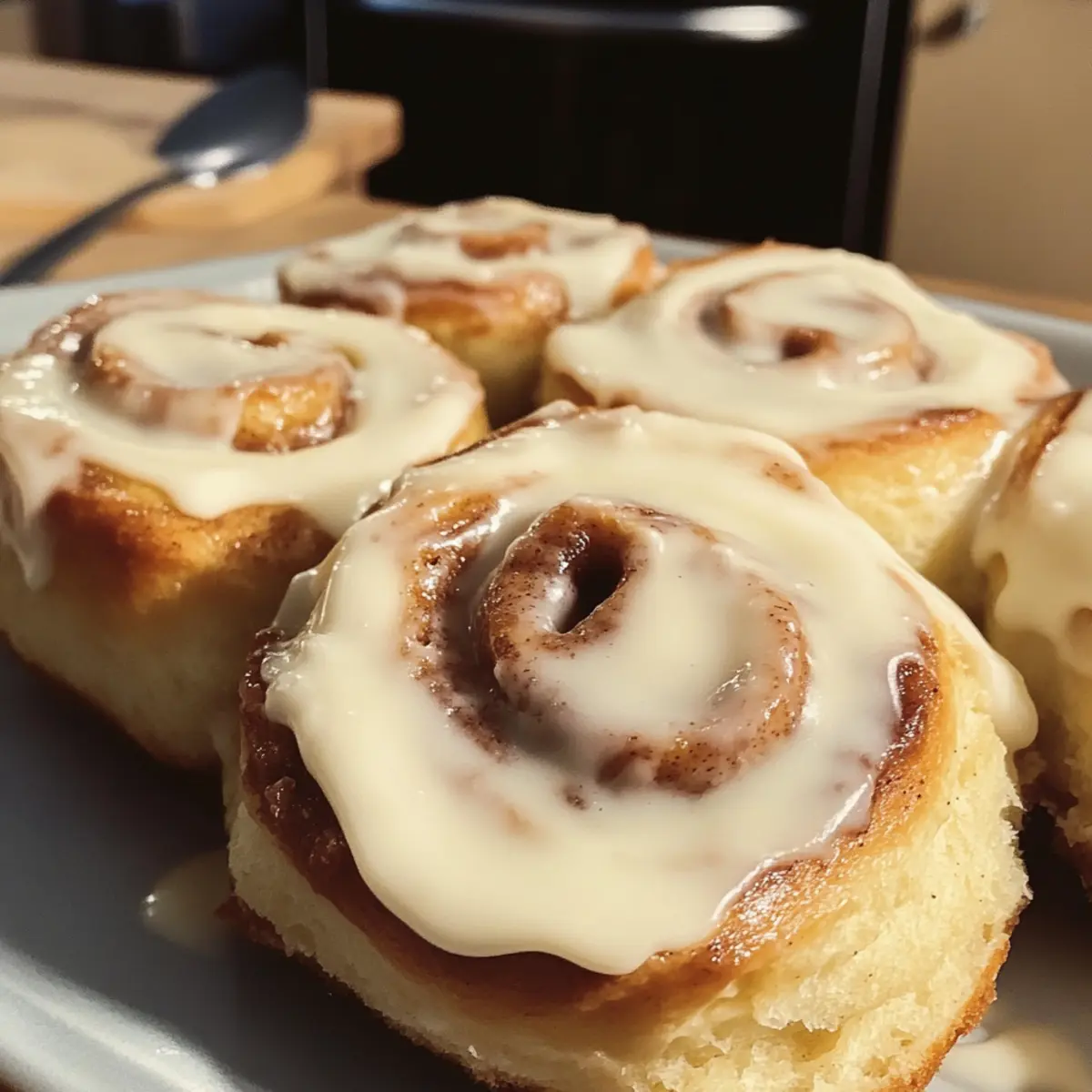 Erlebe den unwiderstehlichen Duft und Geschmack von Zimtschnecken mit einer himmlischen Frischkäseglasur – perfekt für Frühstück oder Brunch!
