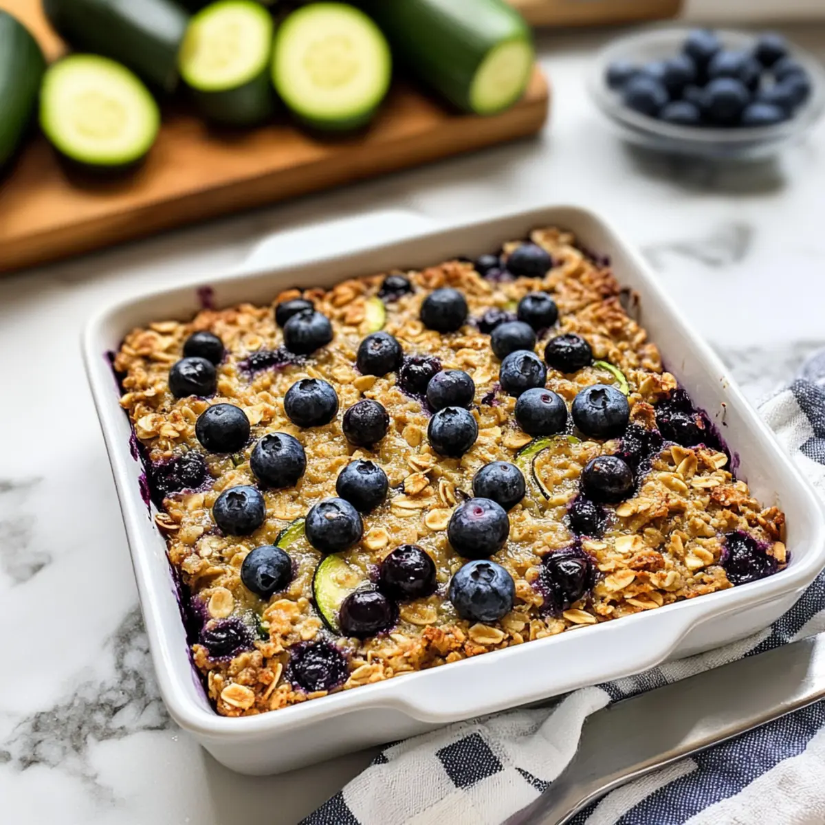 Schon mal in der Küche gestanden und überlegt, wie man die gesunde Ernährung mit einem Hauch von Genuss verbinden kann? Hier kommt mein köstlicher Vorschlag: Zucchini Blaubeer Gebackenes Haferflocken! Diese einfache und nahrhafte Frühstücksoption bringt die ballaststoffreiche Kraft der Haferflocken, die süße Frische der Blaubeeren und die versteckte Ernährung der Zucchini zusammen. In nur 40 Minuten zaubern Sie ein herzhaftes Gericht, das nicht nur perfekt für stressige Morgen ist, sondern auch wunderbar in den Kühlschrank oder die Tiefkühltruhe passt. Ein schnelles Frühstück wird somit zum echten Genuss! Neugierig, wie Sie mit einem einzigen Rezept kreativ werden können? Lassen Sie uns gemeinsam in die Zubereitung eintauchen! Warum Zucchini Blaubeer Haferflocken lieben? Einfachheit: Die Zubereitung ist leicht und benötigt keine besonderen Kochkünste – einfach zusammenmixen und backen! Vielfältigkeit: Dieses Rezept lässt sich flexibel anpassen; tauschen Sie die Blaubeeren gegen andere Früchte, um Abwechslung zu schaffen. Gesund und nahrhaft: Die Kombination aus Haferflocken und Zucchini füllt nicht nur, sondern versorgt Sie auch mit wichtigen Nährstoffen. Perfekt für Meal Prep: Backen Sie gleich eine große Portion und genießen Sie die Reste an hektischen Morgen oder frieren Sie sie für later ein! Genuss pur: Der Kuchen-ähnliche Geschmack macht das Frühstück zum Hochgenuss, ohne dabei das Gewissen zu belasten. Wenn Sie weitere gesunde Ideen suchen, probieren Sie diesen Zucchini Spinat Feta Auflauf oder die Zucchini Kuchen Rezept! Zutaten für Zucchini Blaubeer Gebackenes Haferflocken • Für einen gesunden Start in den Tag! Für die Basis Rolled Oats – liefern die herzhaften Ballaststoffe, die Sie für den Tag benötigen. Verwenden Sie glutenfreie Haferflocken für eine GF-Option. Ground Cinnamon – sorgt für ein warmes Aroma und Geschmack. Kann durch Piment für eine andere Geschmacksnote ersetzt werden. Ground Nutmeg – verstärkt die Aromenvielfalt. Kann weg gelassen werden, wenn nicht verfügbar. Baking Powder – sorgt für eine luftige Textur. Achten Sie darauf, dass es frisch ist, um die Effektivität zu maximieren. Salt – hebt den Geschmack hervor und balanciert die Aromen. Essenziell für Backwaren. Für die Feuchtigkeit Milk of Choice – bietet die nötige Feuchtigkeit. Ob Milch, Mandel- oder Hafermilch, passen Sie sie an Ihre Vorlieben an. Maple Syrup/Honey – gibt süßen Geschmack. Kann durch pürierte Bananen für eine zuckerreduzierte Variante ersetzt werden. Eggs – sorgen für Struktur und Feuchtigkeit. Können durch Leinsamen-Eier für eine vegane Option ersetzt werden. Vanilla Extract – verleiht eine zusätzliche Geschmackstiefe. Kann weggelassen werden, wenn nicht nötig. Für den fruchtigen Genuss Blueberries – bringen natürliche Süße und Antioxidantien. Verwenden Sie frische oder gefrorene Beeren; gefrorene Beeren nicht auftauen. Grated Zucchini – sorgt für Feuchtigkeit und Nährstoffe, ohne die Geschmäcker zu überwältigen. Lassen Sie die Flüssigkeit nicht abtropfen, um die Feuchtigkeit zu erhalten. Schritt-für-Schritt-Anleitung für Zucchini Blaubeer Gebackenes Haferflocken Step 1: Ofen vorheizen und Backform vorbereiten Heizen Sie den Ofen auf 190 °C (375 °F) vor und fetten Sie eine 20×20 cm (8×8 Zoll) Backform leicht ein. Dazu können Sie etwas Öl oder Butter verwenden, um ein Ankleben des Gebäckes zu verhindern. Während der Ofen heiß wird, können Sie sich um die trockenen Zutaten kümmern. Step 2: Trockene Zutaten mischen In einer mittelgroßen Schüssel vermengen Sie die Haferflocken, Gemahlenen Zimt, Muskatnuss, Backpulver und Salz gut miteinander. Stellen Sie sicher, dass alles gleichmäßig verteilt ist, um einen gleichmäßigen Geschmack in Ihrem Zucchini Blaubeer Gebackenes Haferflocken zu gewährleisten. Dies dauert etwa 2-3 Minuten und sorgt für die perfekte Basis für das Rezept. Step 3: Nasse Zutaten hinzufügen Fügen Sie die Eier, die Milch Ihrer Wahl, Vanilleextrakt und den Ahornsirup oder Honig zu den trockenen Zutaten hinzu. Rühren Sie die Mischung gründlich um, bis alles gut verbunden ist und eine cremige Konsistenz erreicht wird. Dies gewährleistet, dass Ihr Frühstück feucht und lecker bleibt. Step 4: Zucchini und Blaubeeren integrieren Jetzt ist es Zeit, die geriebene Zucchini und 1 Tasse Blaubeeren vorsichtig unter die Mischung zu heben. Arbeiten Sie sanft, um die Beeren nicht zu zerdrücken; sie bringen zusätzlich Farbe und Geschmack in Ihr Zucchini Blaubeer Gebackenes Haferflocken. Verteilen Sie die Mischung gleichmäßig in der vorbereiteten Backform. Step 5: Backen und fertigstellen Bestreuen Sie die oberste Schicht mit den restlichen Blaubeeren und schieben Sie die Form in den vorgeheizten Ofen. Backen Sie das Ganze für 40-45 Minuten, bis die Oberfläche goldbraun ist und bei leichtem Druck zurückspringt. Ihr Zucchini Blaubeer Gebackenes Haferflocken sollte köstlich duften! Step 6: Abkühlen lassen und servieren Nach dem Backen lassen Sie das Gebäck in der Form etwa 10 Minuten auskühlen. Schneiden Sie es dann in Stücke und servieren Sie es warm. Sie können die Reste im Kühlschrank für bis zu 4 Tage aufbewahren oder das gebackene Haferflocken auf Vorrat einfrieren. So haben Sie jederzeit ein nahrhaftes Frühstück zur Hand! Zubereitung im Voraus für Zucchini Blaubeer Gebackenes Haferflocken Das Zucchini Blaubeer Gebackenes Haferflocken ist ideal für die Wochenplanung! Sie können die trockenen Zutaten wie Haferflocken, Zimt, Muskatnuss, Backpulver und Salz bis zu 24 Stunden im Voraus mischen und in einem luftdichten Behälter aufbewahren. Auch die geriebene Zucchini und Blaubeeren lassen sich vorbereiten; schneiden Sie die Zucchini und bewahren Sie sie in einem separaten Behälter im Kühlschrank auf, wo sie bis zu 3 Tage frisch bleiben. Wenn Sie bereit sind zu backen, fügen Sie einfach die nassen Zutaten hinzu, vermischen Sie alles und backen Sie es im vor